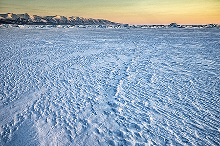 Le lac Baikal constitue la plus grande réserve d’eau douce liquide à la surface de la terre. Mais cette immensité liquide se transforme en un incroyable désert de glace en hiver. Les randonnées que l’on peut y faire alors, en voiture, en patin à glace ou encore à pied, et qui amènent de sites chamaniques en stations météorologiques à peine sorties de l’ère soviétique, dans un dédale de glace aux formes et aux couleurs multiple, font entrer dans un univers insolite où l’homme a bien du mal à se trouver une place.